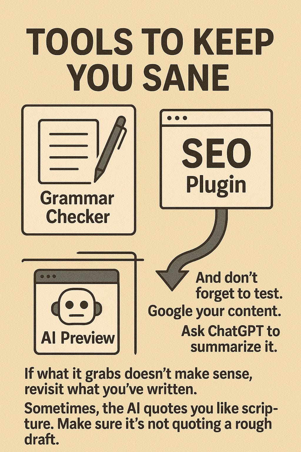 Use tools that help you bridge the human-robot gap. Grammar checkers to catch drift. SEO plugins to highlight opportunities. AI preview tools that show what a chatbot might pull from your content.