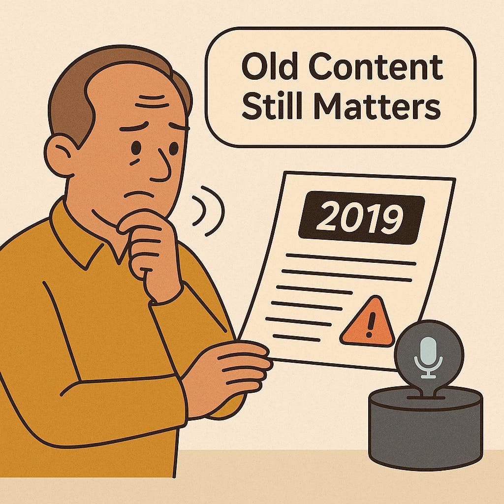 Just because you wrote it years ago doesn't mean it's retired. LLMs don't care about freshness—they'll pull from that dusty 2019 how-to if it's still floating around. If it's outdated, it may provide incorrect information to someone who trusts it.