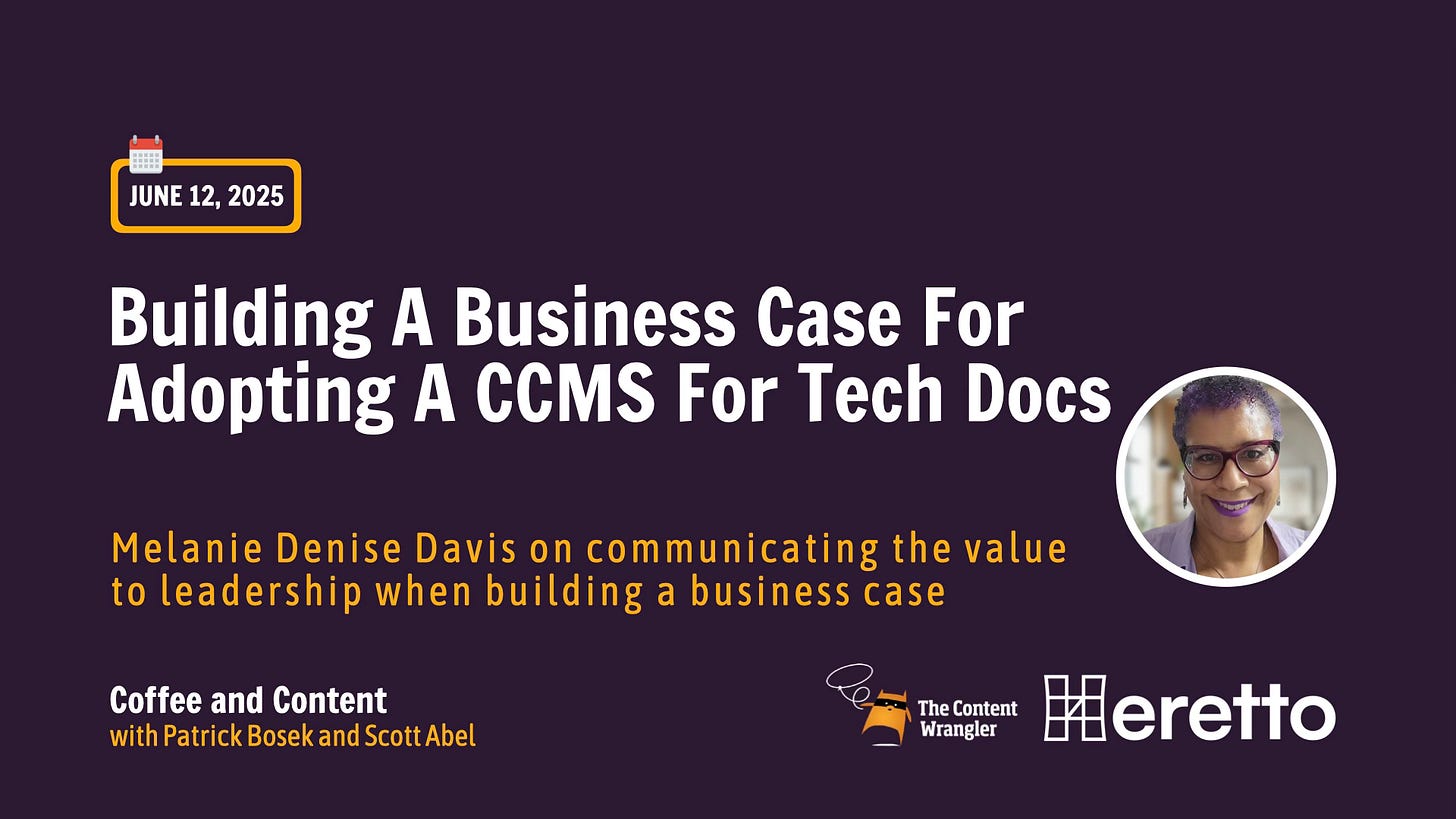 Join us for a chat with Melanie Denise Davis, Founder and CEO of Dragonfly Diva Docs. Discover how your tech docs team can communicate the value of shifting from unstructured content creation to leveraging the power of semantically-rich structured content managed in a component content management system (CCMS).