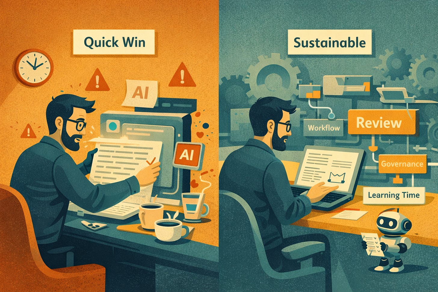 Review cycles grow longer as someone has to verify facts, check tone, and untangle confident-sounding mistakes. Quality concerns begin to surface, not because AI is inherently flawed, but because it is being asked to compensate for a lack of time, structure, and planning.